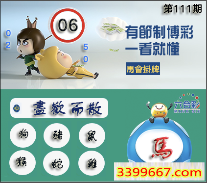 111期正版彩图挂:06 爆:马 挂牌成语:盡歡而散 挂牌出肖:狗猪鼠猴蛇鸡