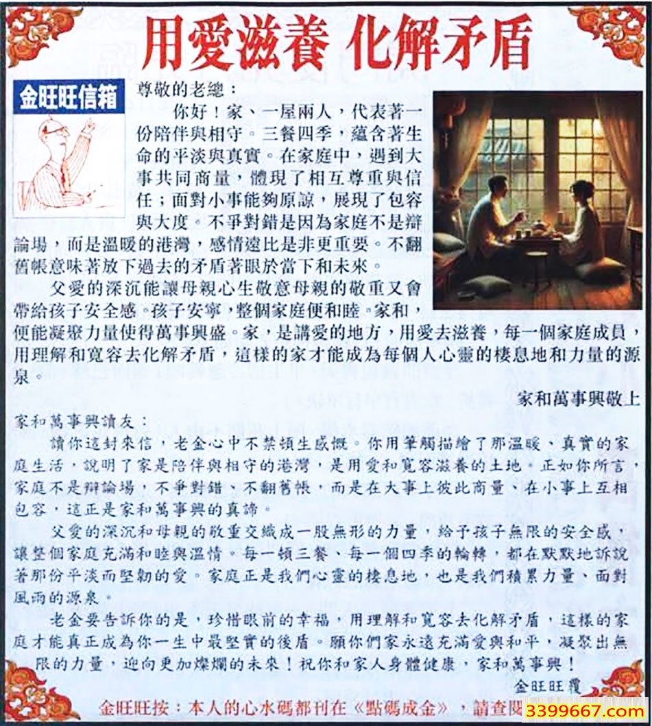 072期:金旺旺信箱彩民推荐→→《用愛滋養 化解矛盾》