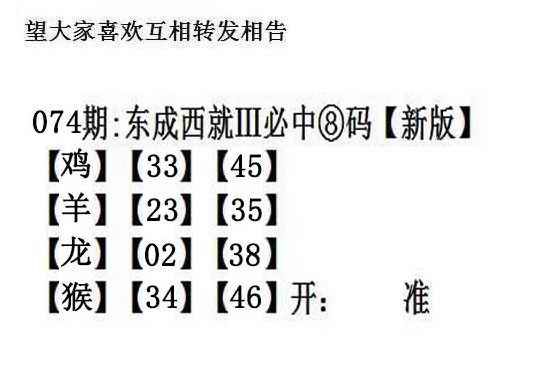 074期:另版【东成西就四肖8码】