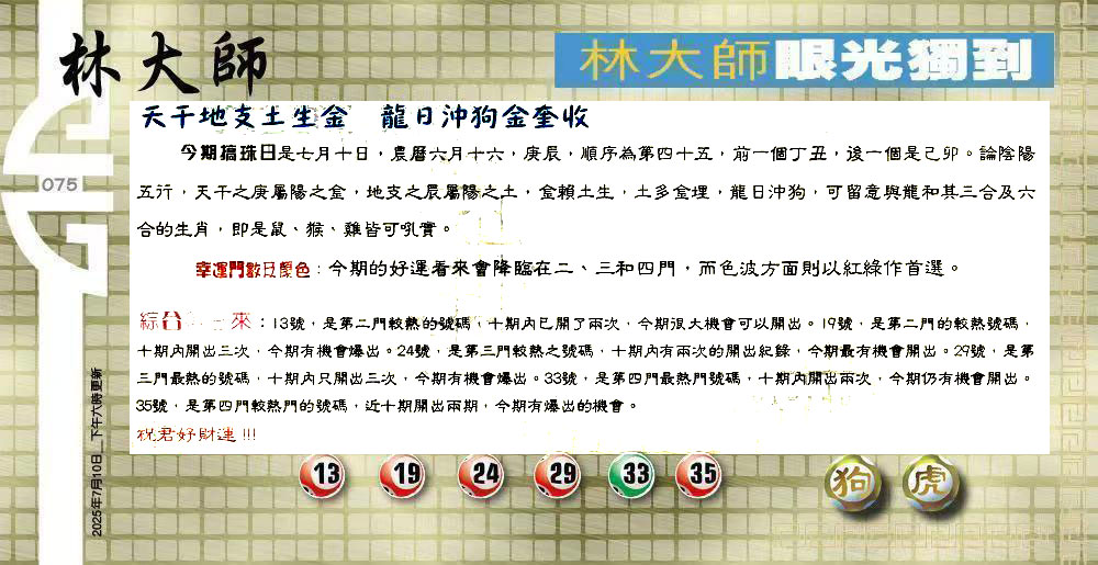 075期:六合皇金句/老总论码/萧公子/林大师/五行夺码/老总信箱截