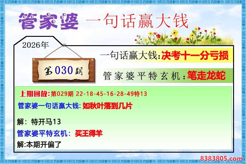 主题 : 030期:管家婆一句话赢大钱