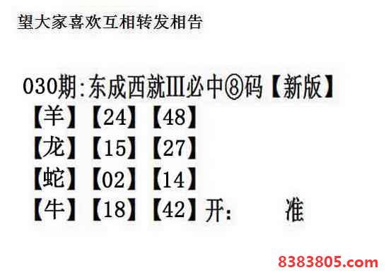 主题 : 030期:另版【东成西就四肖8码】