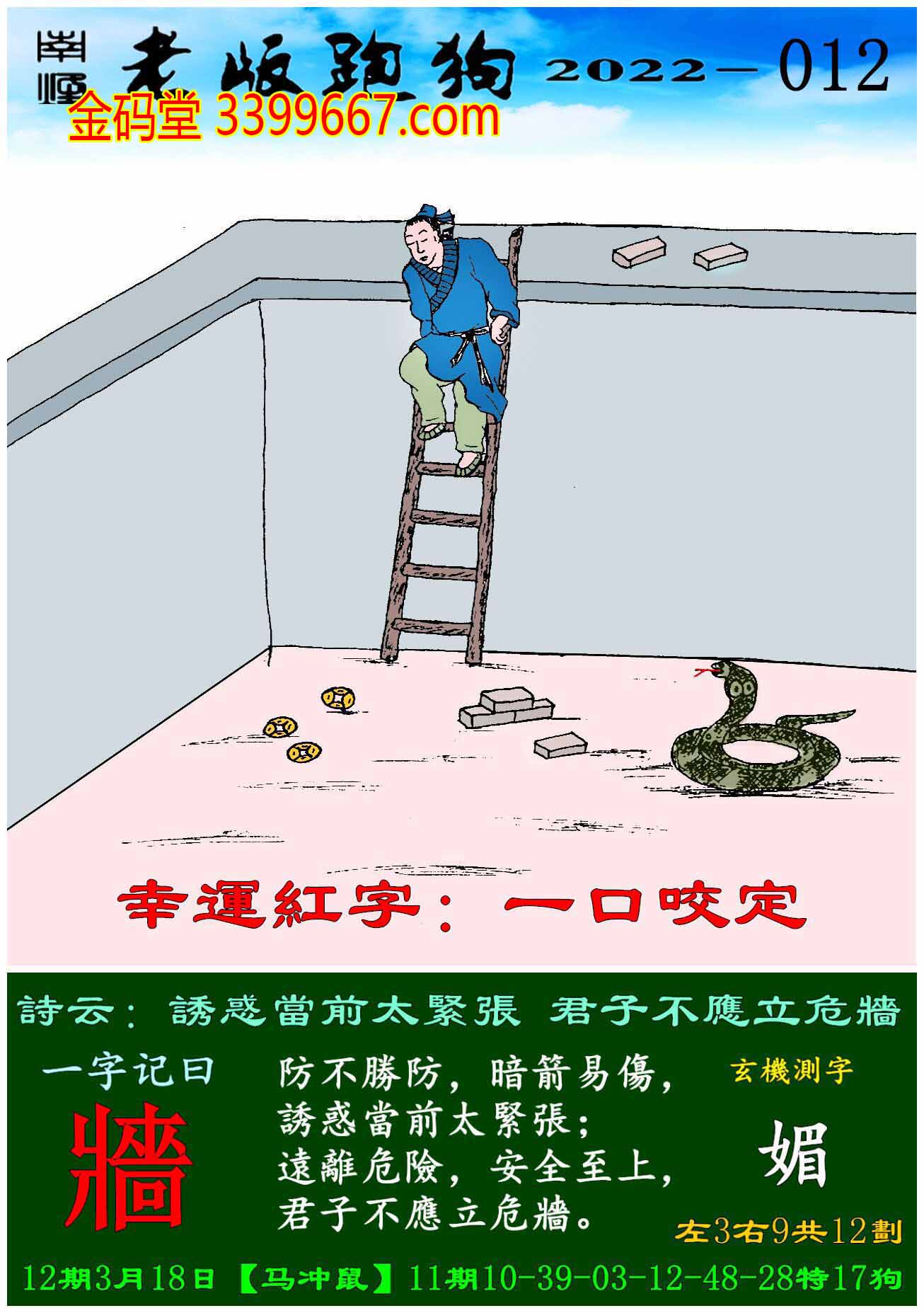 012期老版跑狗一字記之曰:【牆】
