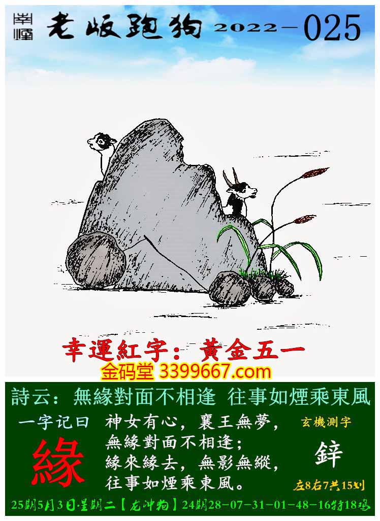 主题 : 025期老版跑狗一字記之曰:【緣】玄機測字:《鋅》