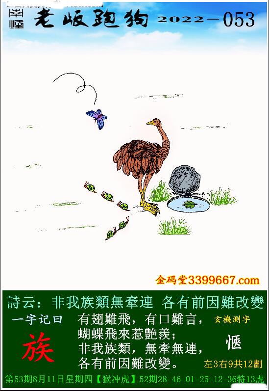 053期老版跑狗一字記之曰:【族】