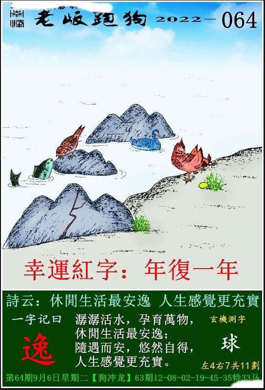 064期老版跑狗一字記之曰:【逸】