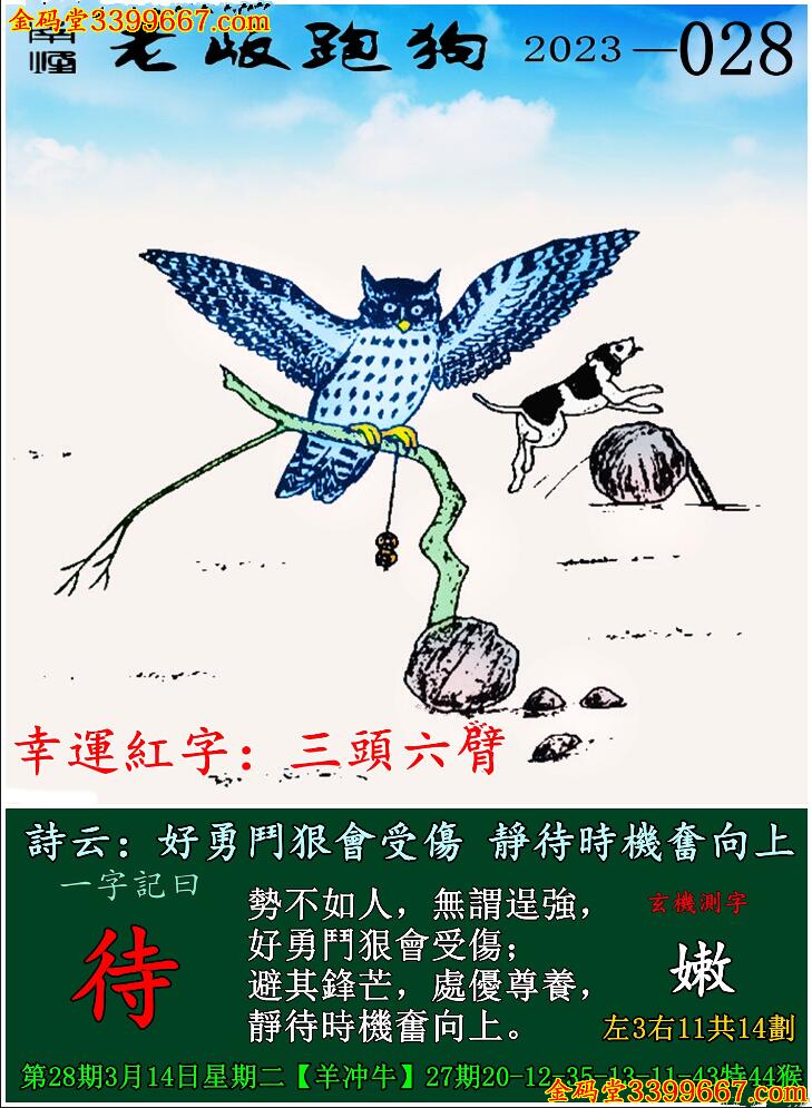 028期老版跑狗一字記之曰:【待】