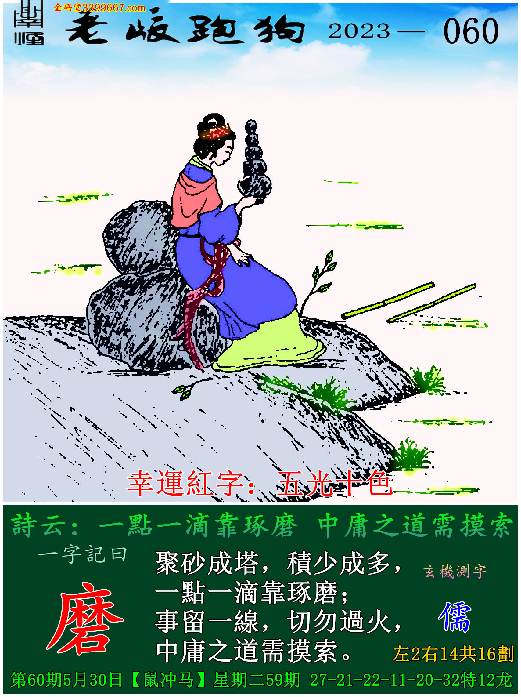 060期老版跑狗一字記之曰:【磨】玄機測字:《儒》