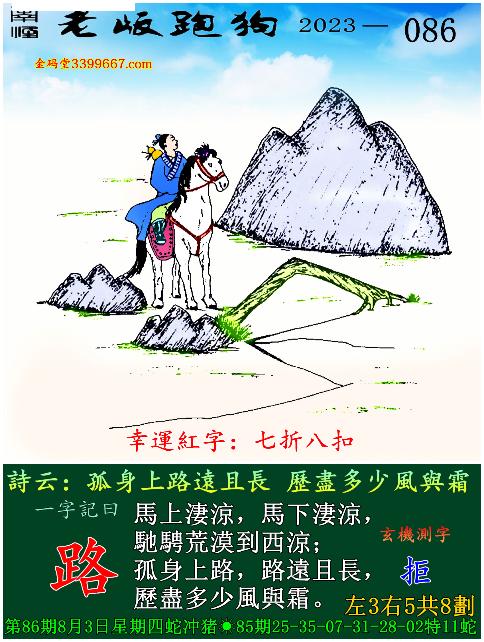 主题 : 086期老版跑狗一字記之曰:【路】玄機測字:《拒》