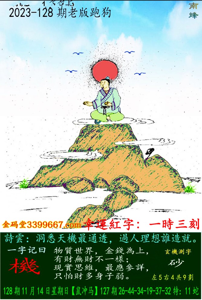 128期老版跑狗一字記之曰:【機】 玄機測字:《砂》