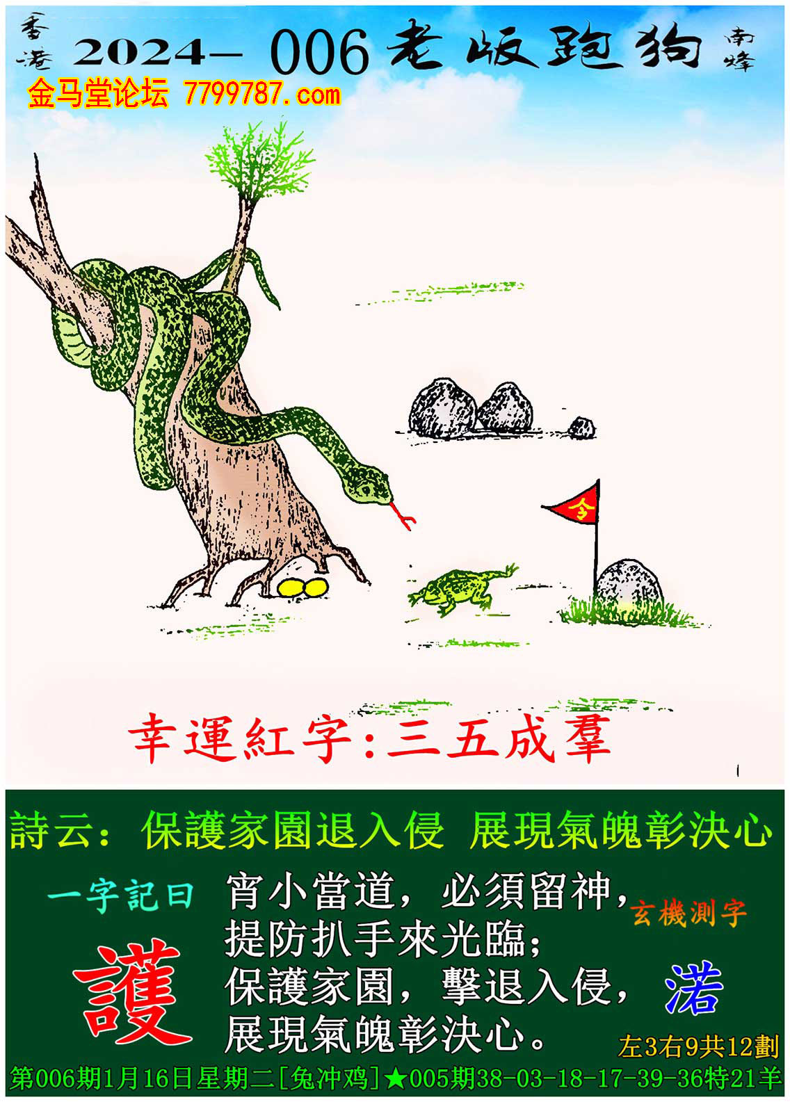 主题 : 006期老版跑狗一字記之曰:【護】 玄機測字:《渃》