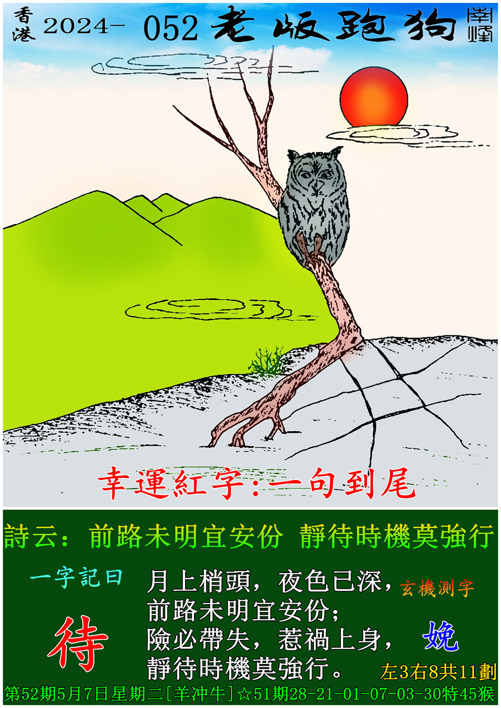 052期老版跑狗一字記之曰:【待】