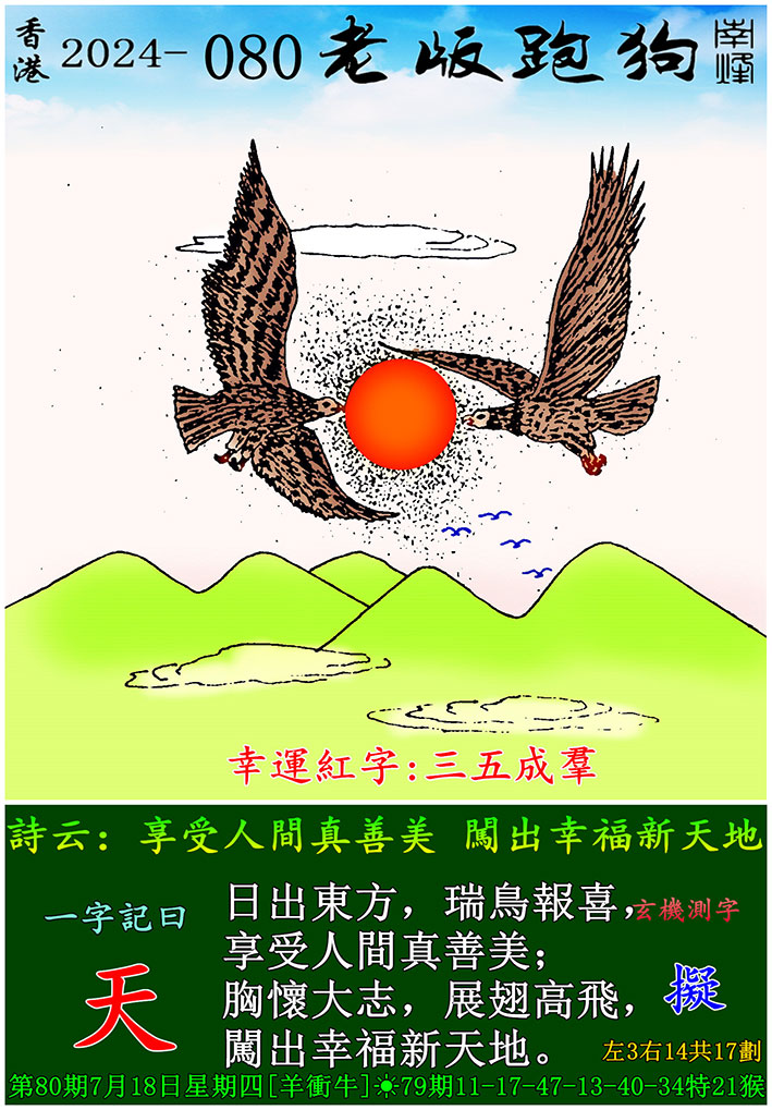 080期老版跑狗一字記之曰:【天】
