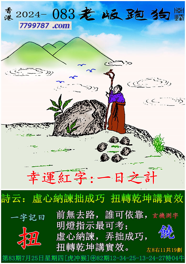 主题 : 083期老版跑狗一字記之曰:【扭】 玄機測字:《饒》