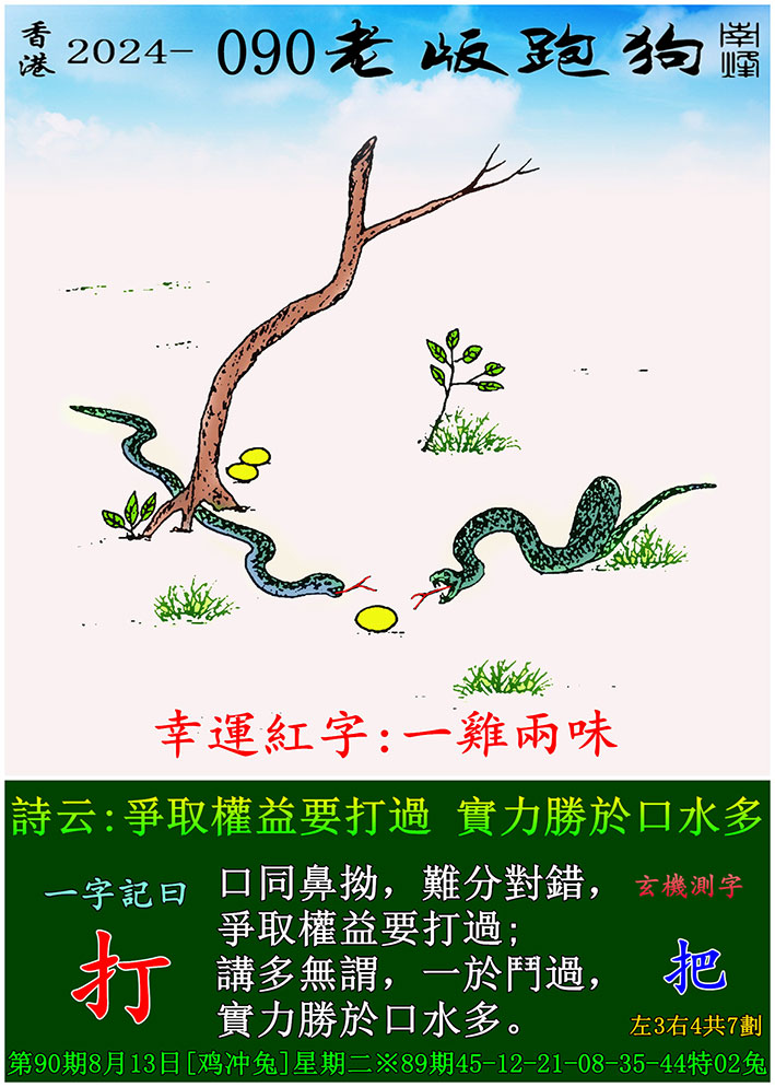 090期老版跑狗一字記之曰:【打】 玄機測字:《把》