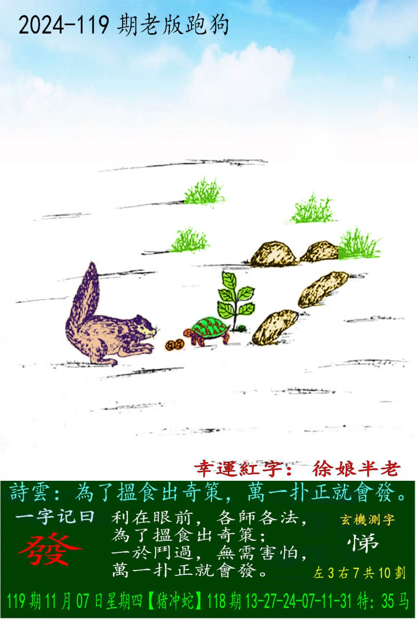 102期老版跑狗一字記之曰:【發】