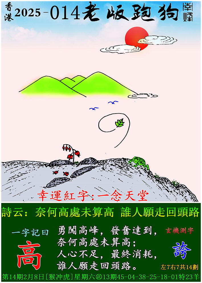 014期老版跑狗一字記之曰:【高】