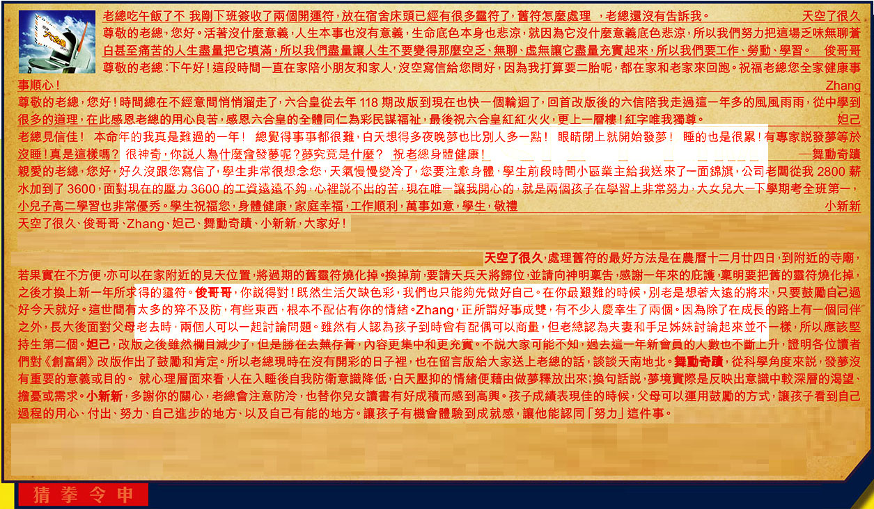 →〖妲己〗:改版之後雖然欄目減少了,但是勝在去蕪存菁,內容更集中和更充實。不說大家可能不知,過去這一年新會員的人數也不斷上升,證明各位讀者們對《創富網》改版作出了鼓勵和肯定。所以老總現時在沒有開彩的日子裡,也在留言版給大家送上老總的話,談談天南地北。