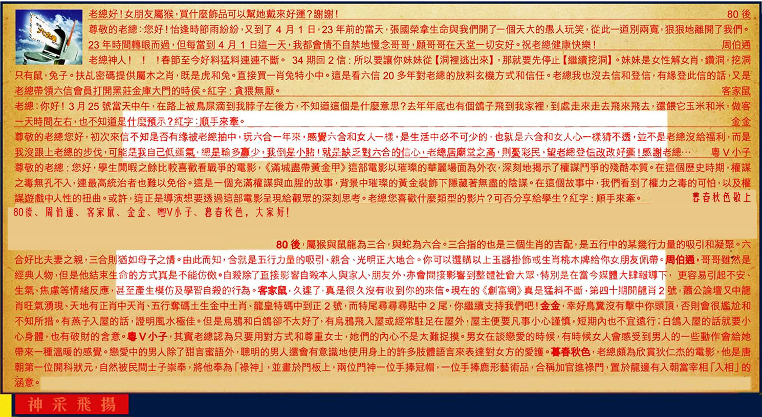 【3】.老總神人!!!春節至今好料猛料連連不斷。34期回2信:所以要讓你妹妹從【洞裡逃出來】, 那就要先停止【繼續挖洞】。妹妹是女性解女肖,鑽洞,挖洞只有鼠,兔子。扶乩密碼提供屬木之肖,既是虎和兔。直接買一肖兔特小中。這是看六信20多年對老總的放料玄機方式和信任。老總我也沒去信和登信,有緣登此信的話,又是老總帶領六信會員打開黑莊金庫大門的時侯。紅字:貪猥無厭。 客家鼠