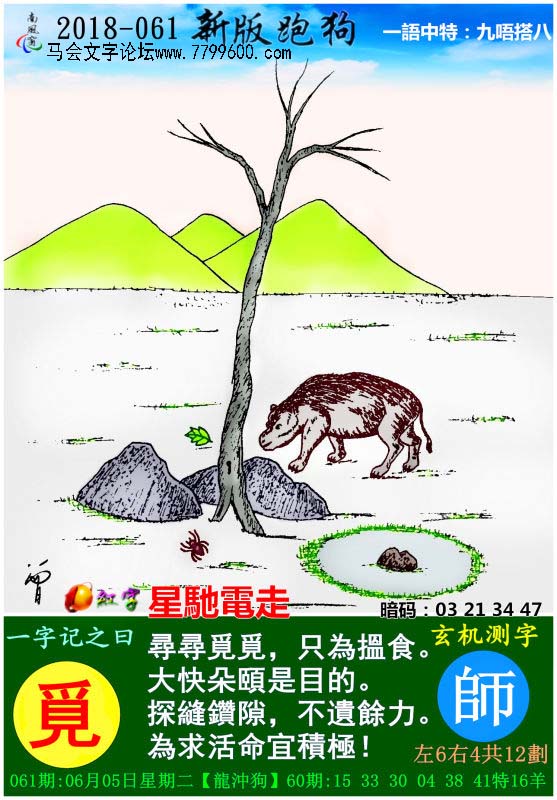 主题 : 061期:新版跑狗一字記之曰【覓】玄機測字《師》