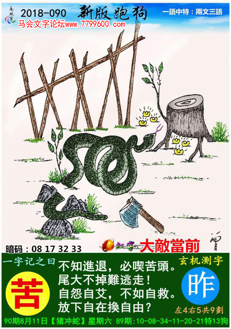 主题 : 090期:新版跑狗一字記之曰【苦】玄機測字《昨》