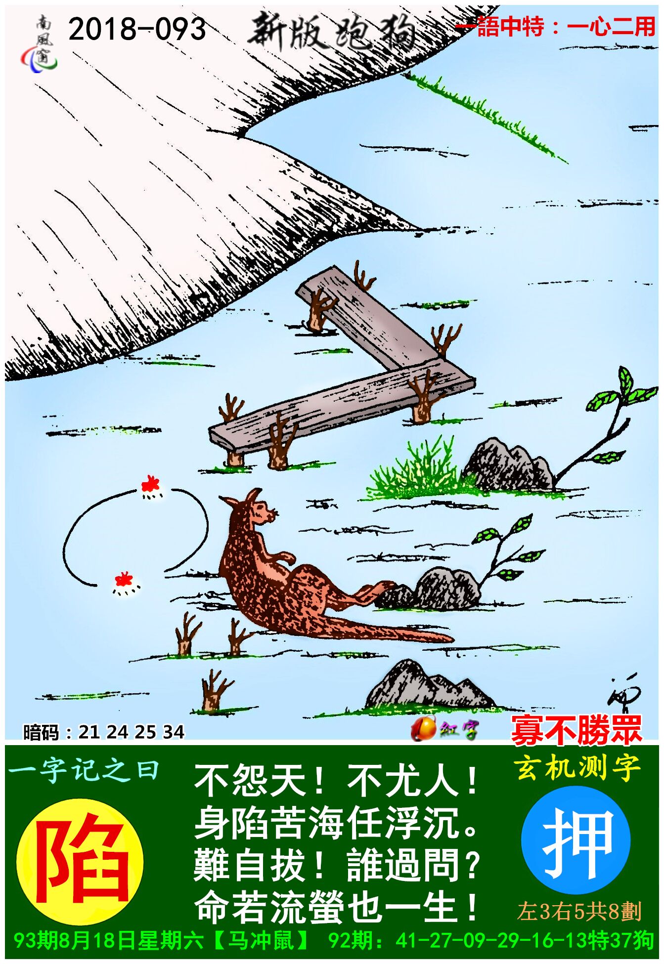 主题 : 093期:新版跑狗一字記之曰【陷】玄機測字《押》