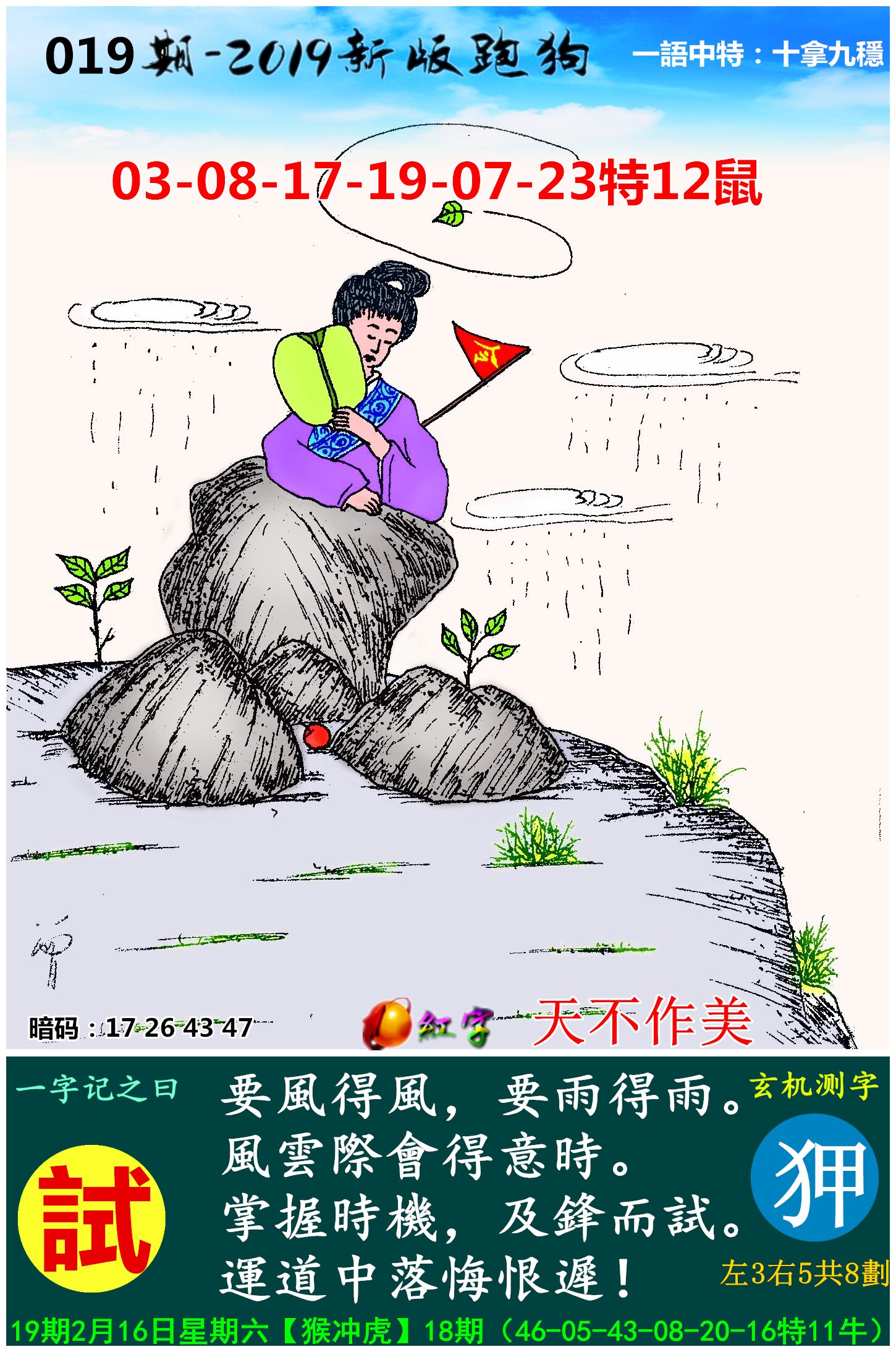 主题 : 011期:新版跑狗一字記之曰【得】玄機測字:《保》