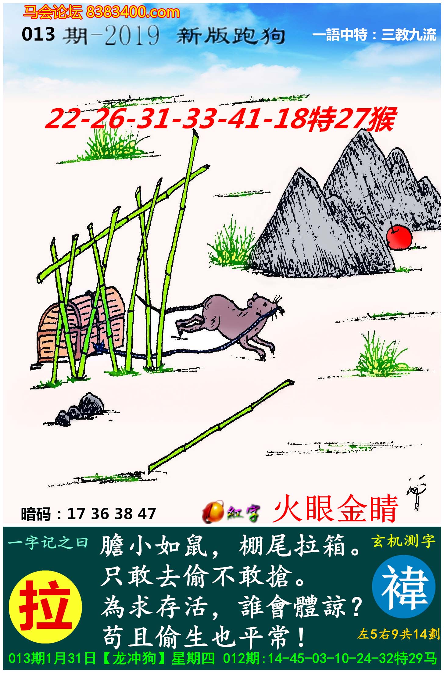 主题 : 053期:新版跑狗一字記之曰【拉】玄機測字:《淺》