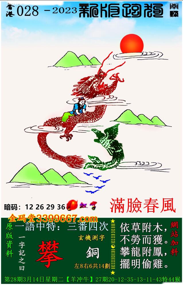 主题 : 028期:新版跑狗一字記之曰【攀】 玄機測字:《銅》