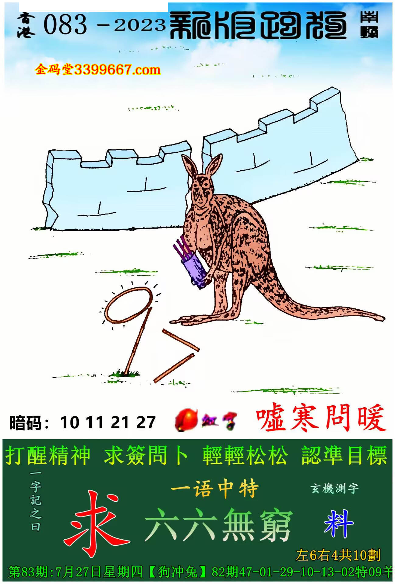 主题 : 083期:新版跑狗一字記之曰【求】玄機測字:《料》