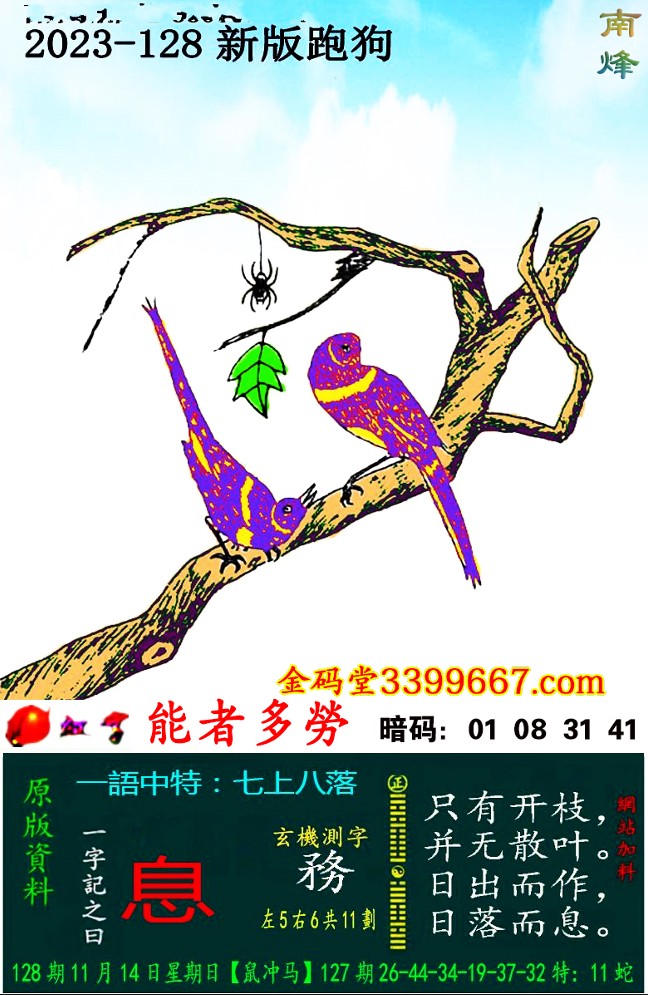 主题 : 128期:新版跑狗一字記之曰【息】 玄機測字:《務》