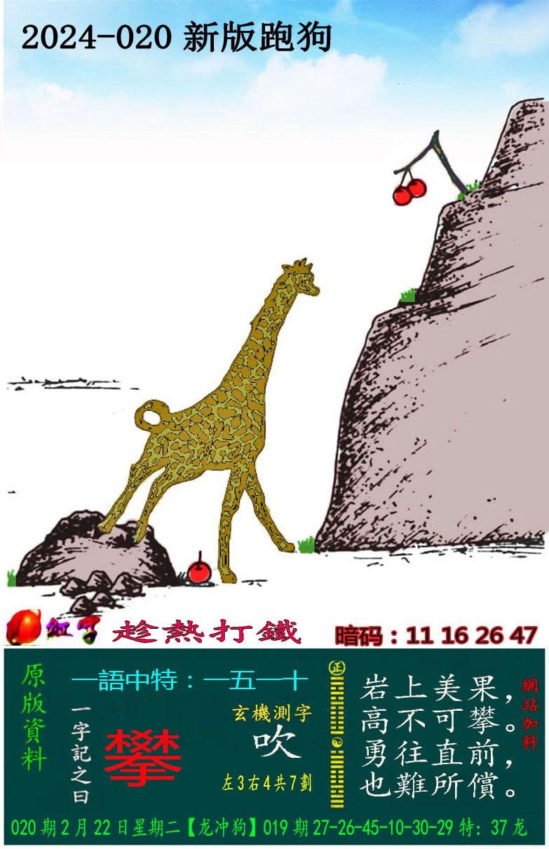 020期:新版跑狗一字記之曰【攀】 玄機測字:【媒】