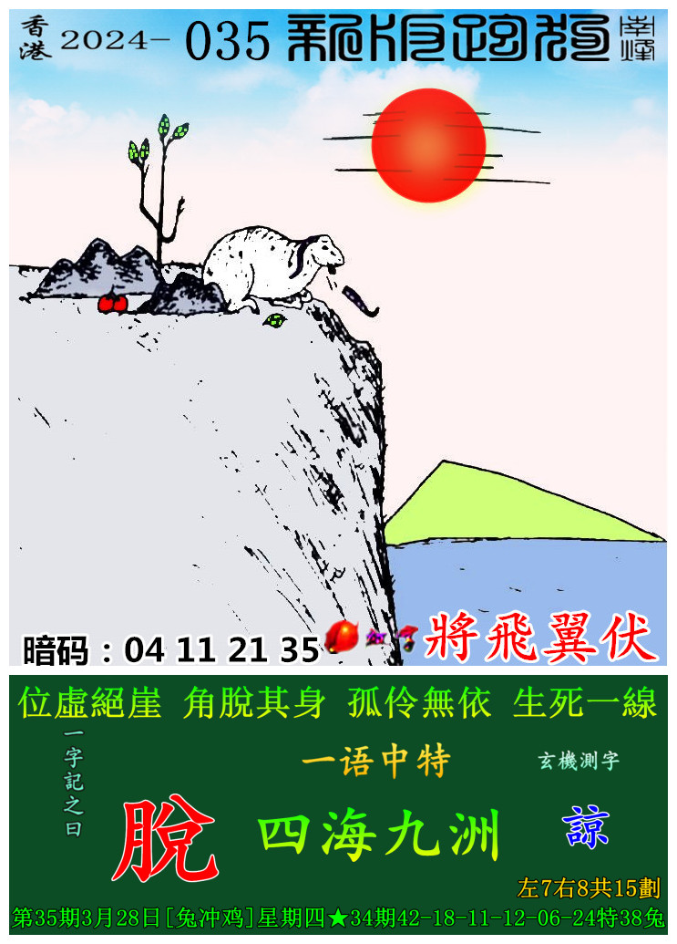 主题 : 035期:新版跑狗一字記之曰【脫】 玄機測字:【諒】