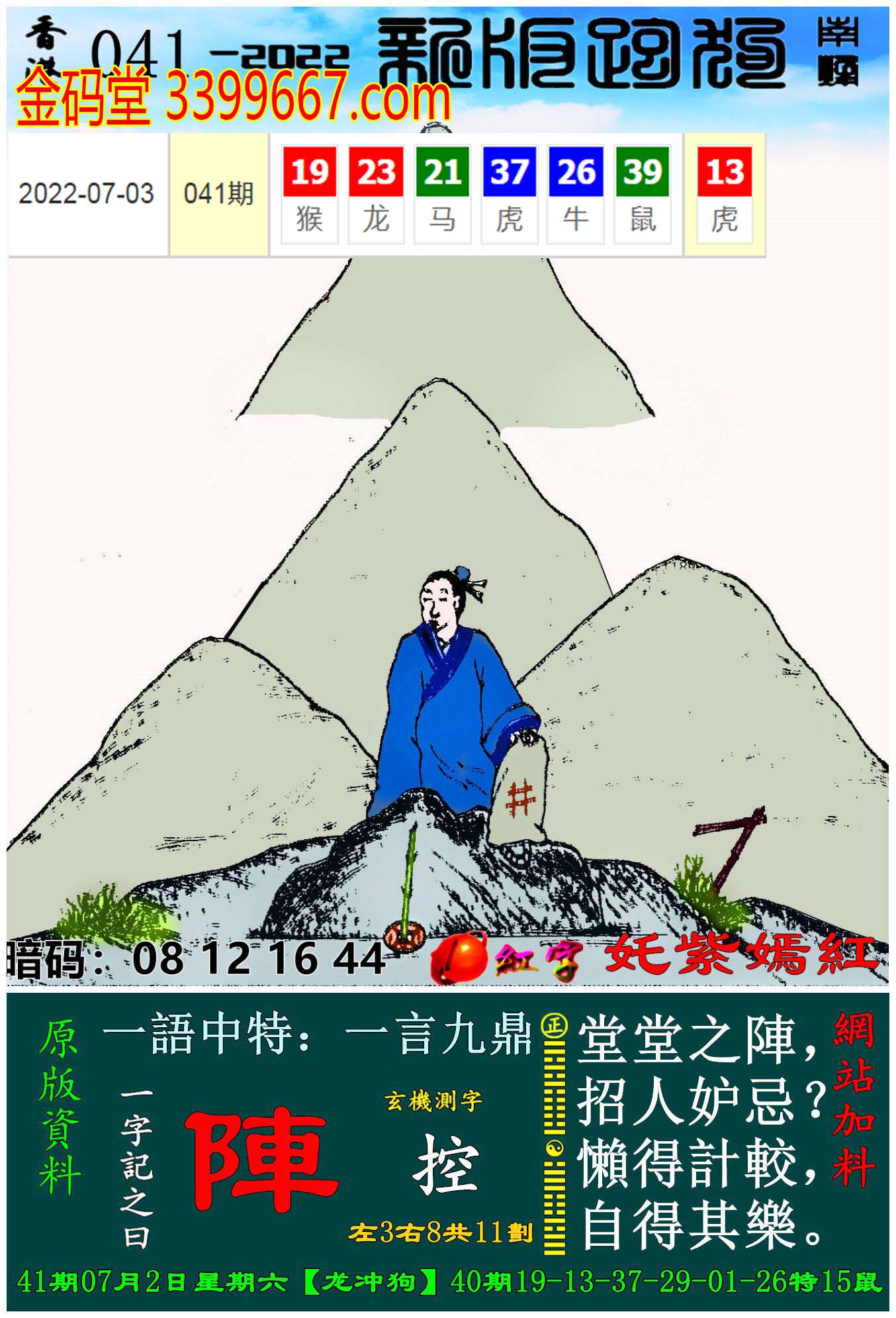 063期:新版跑狗一字記之曰【山】 玄機測字:【踱】