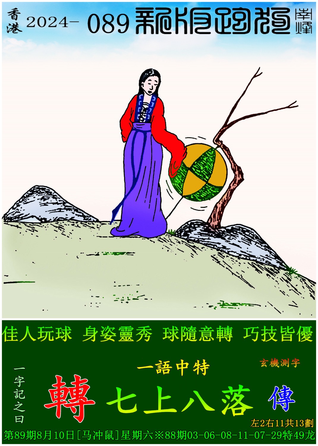 089期:新版跑狗一字記之曰【轉】 玄機測字:【傳】
