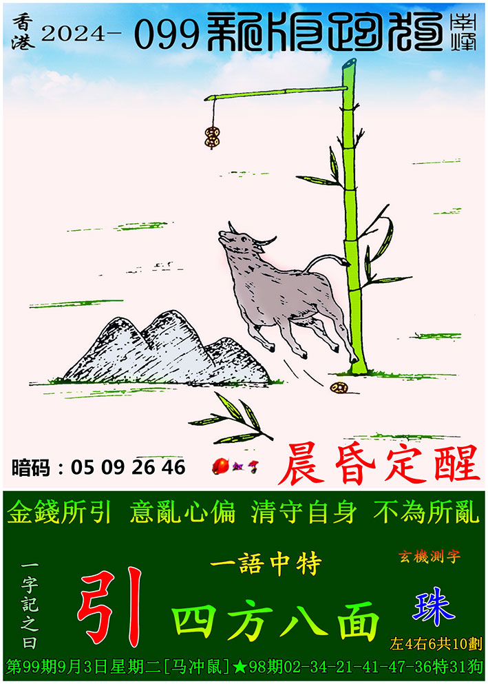 099期新版跑狗一字記之曰:【引】