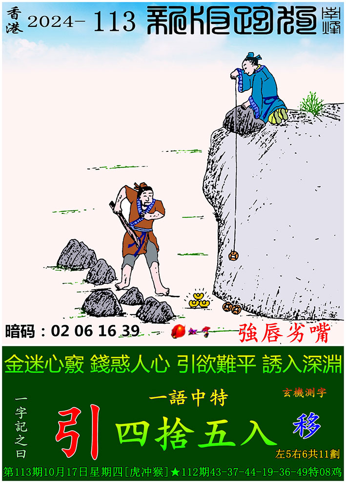 主题 : 113期:新版跑狗一字記之曰【引】 玄機測字:【移】