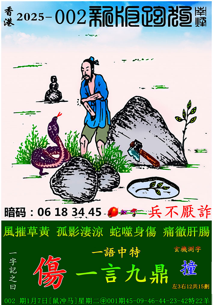 002期:新版跑狗一字記之曰【傷】 玄機測字:【撞】