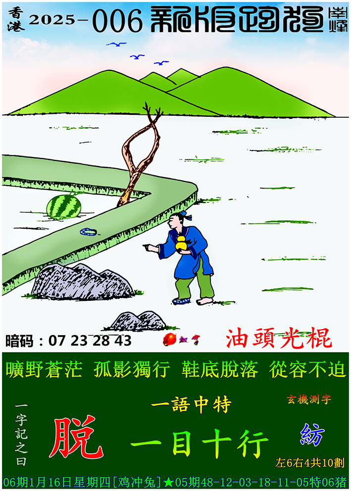 主题 : 006期:新版跑狗一字記之曰【脱】 玄機測字:【紡】