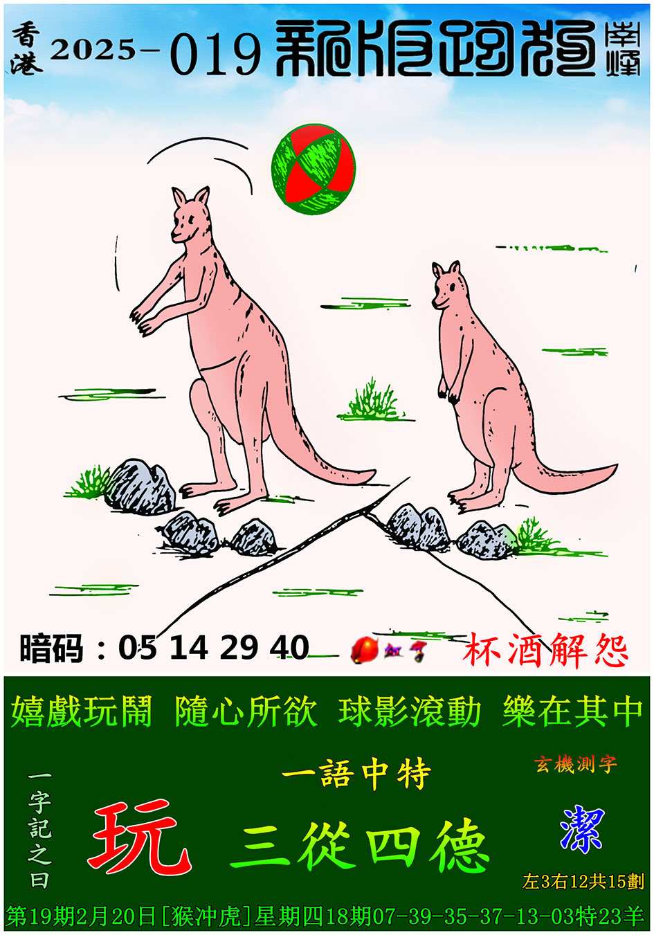 主题 : 019期:新版跑狗一字記之曰【玩】 玄機測字:【潔】