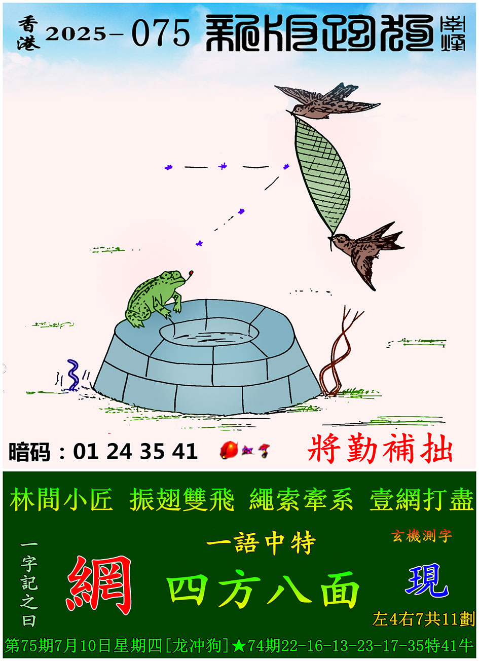 075期新版跑狗一字記之曰:【網】