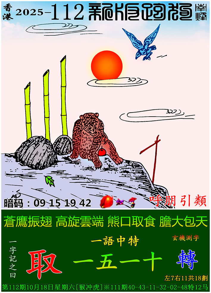112期:新版跑狗一字記之曰【取】 玄機測字:【轉】